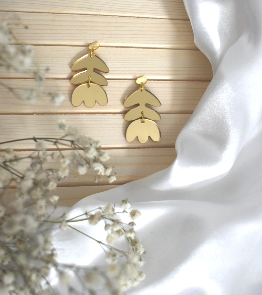 Niva Design korvakorut on käsityönä valmistettu Kuusamossa. Näissä kauniissa Niva Design koruissa on kultainen peiliakryyli. Korvakorutappi kirurginteräs joka päällystetty kultaisella värillä. Välirenkaat messinkiä.