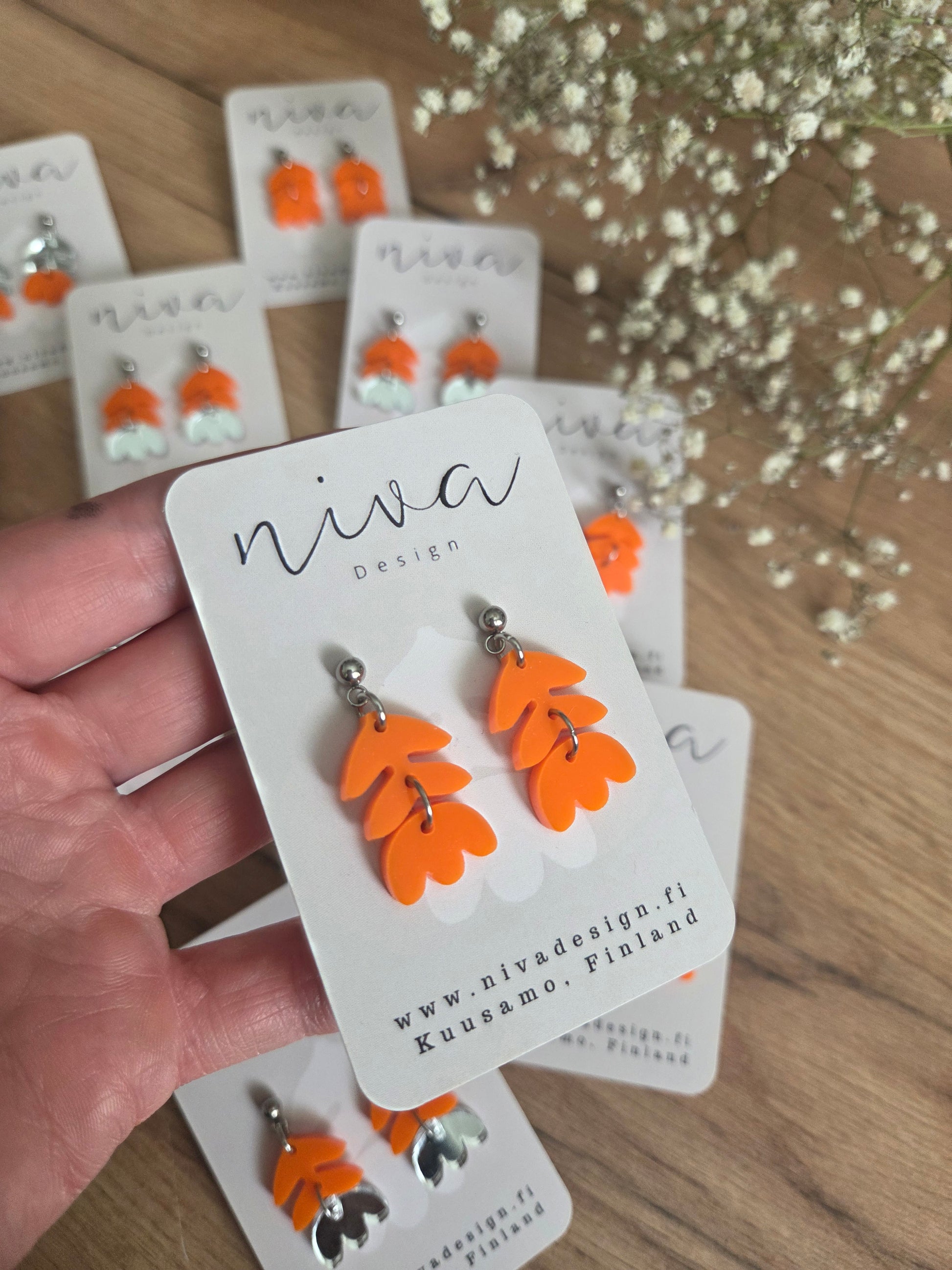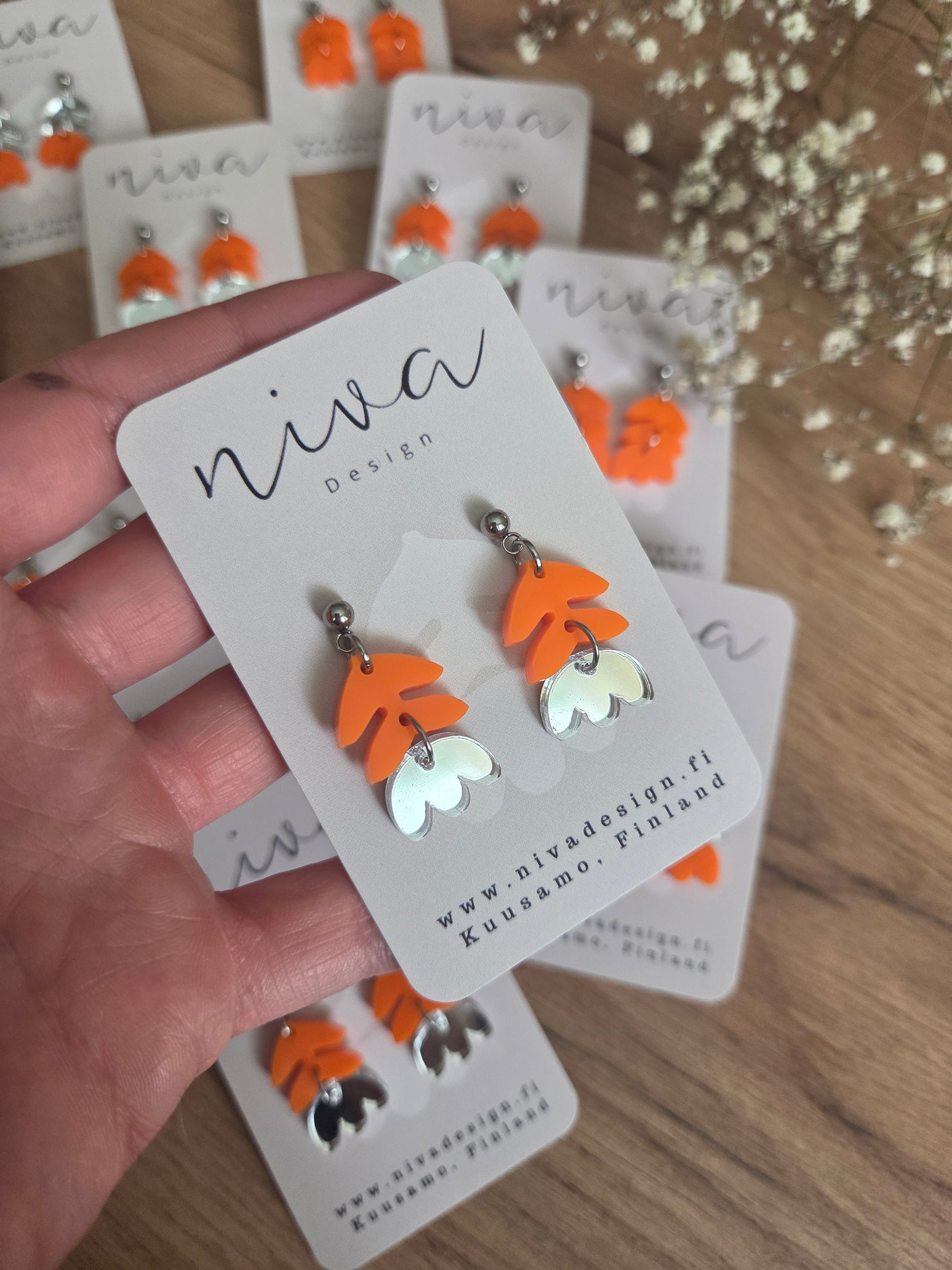 Näissä ihanissa uniikeissa kukka korvakoruissa kukat kääntyvät ylösalaisin, luoden leikkisän ja modernin ilmeen. Korvakorut on valmistettu kevyestä materiaalista, joka varmistaa mukavan käytön koko päivän ajan. Yksityiskohtainen kukkakuviointi tuo raikkaan ja luonnonläheisen tunnelman asuusi. Korvakorut ovat täydellinen lisäys tyyliin, kun haluat erottua joukosta ripauksella omaperäisyyttä. Korut sopivat niin arkeen kuin juhlaankin, ja ne ovat loistava lahjaidea luonnon ja ainutlaatuisen muotoilun ystäville.